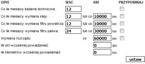 W serwisie jest możliwość definiowania 5 przypomnień powiązanych bezpośrednio z wydatkami. Można ustawić, co jaki czas przypomnienie ma występować, lub co jaki przebieg. Definiuje się także, ile dni wcześniej oraz ile km wcześniej przypomnienie ma zostać wysłane. W przypadku korzystania z usługo SMS, przypomnienia po przebiegu wysyłane są SMS'em po zapisaniu tankowania, które ten przebieg przekroczyło. Dodatkowo istnieje możliwosc zdefiniowania 3 własnych przypomnień o żądanej treści