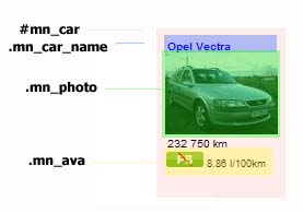 #mn_car - odwołuje się do całości ramki w której znajdują się wyniki